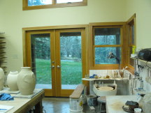 The main construction or our studio was completed in September, 2007 and we started working there on Labor Day. The architect was good friend and fellow potter, Anni. Praetorius. Warren Lisser Construction built the building. Friends Dan Arbogast, Gerry and Rachel Brehm, Randy Bender and brother-in-law Dave Segna helped us with the wiring, retaining wall and siding.